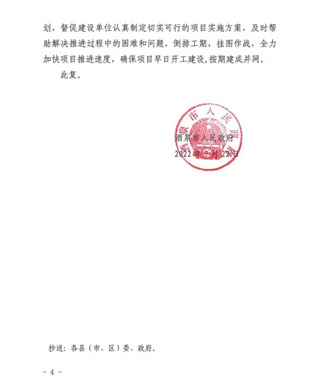 文件要求,本批下達的風(fēng)光指標,光伏需在今年年底全部并網(wǎng),風(fēng)電則要求在明年6月底前建成并網(wǎng)。