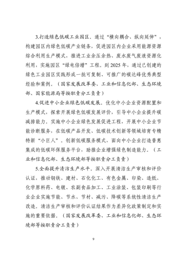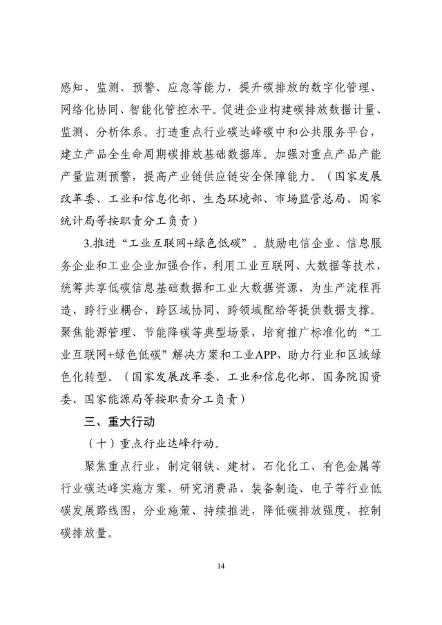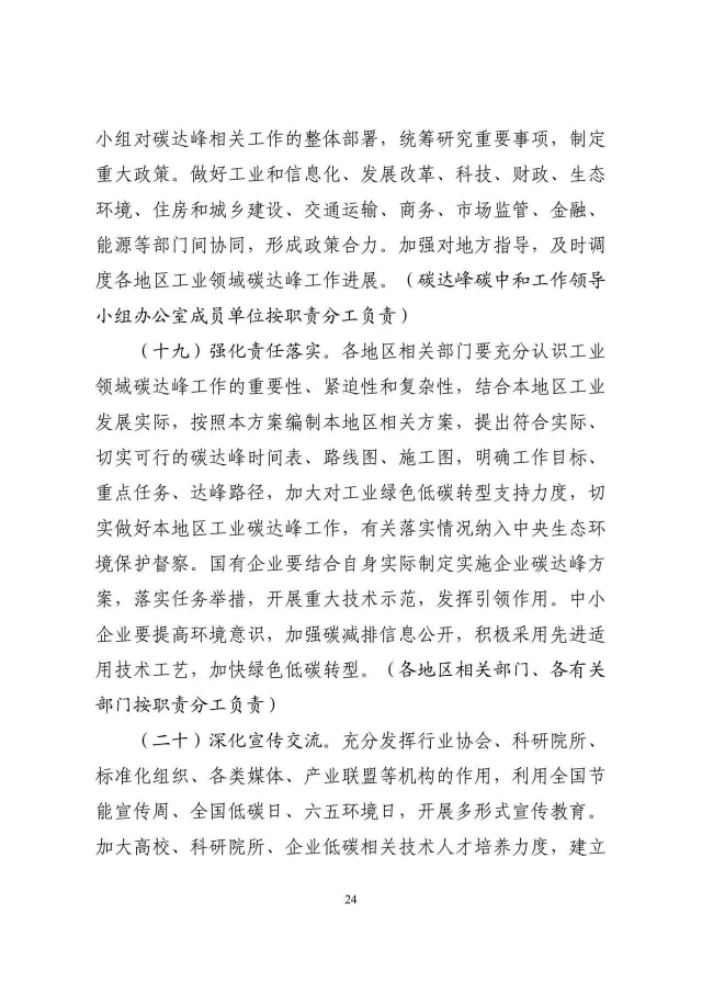 《工業(yè)領(lǐng)域碳達(dá)峰實(shí)施方案》已經(jīng)碳達(dá)峰碳中和工作領(lǐng)導(dǎo)小組審議通過,現(xiàn)印發(fā)給你們,請(qǐng)認(rèn)真貫徹落實(shí)。