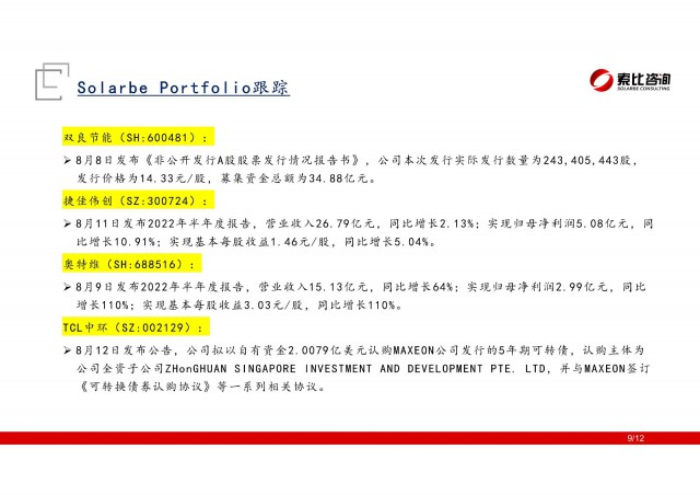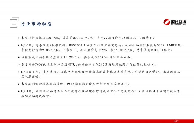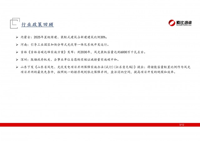 光儲(chǔ)投資周記系索比咨詢(xún)與買(mǎi)方機(jī)構(gòu)合作的日常投研回顧。每周除了簡(jiǎn)要回顧光儲(chǔ)賽道政策、產(chǎn)業(yè)動(dòng)態(tài)、索比獨(dú)家重大資訊等產(chǎn)業(yè)信息外,亦對(duì)二級(jí)市場(chǎng)光儲(chǔ)賽道表現(xiàn)、共建投資組合表現(xiàn)、賽道重要觀(guān)點(diǎn)進(jìn)行跟蹤、分析研判。