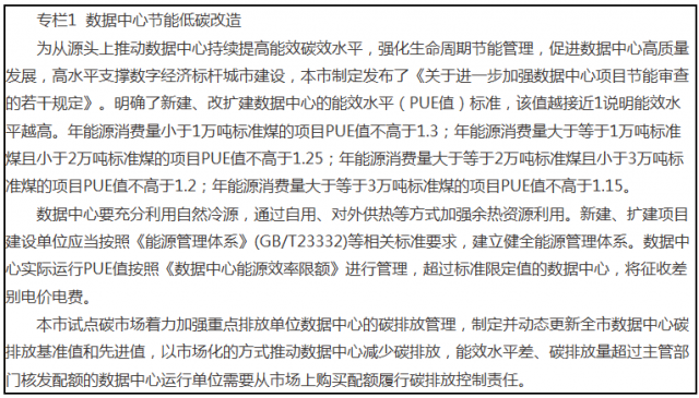第三章 全面推進(jìn)綠色低碳循環(huán)發(fā)展將應(yīng)對(duì)氣候變化和節(jié)能作為推進(jìn)高質(zhì)量發(fā)展的重要途徑,全面落實(shí)首都城市戰(zhàn)略定位,深入貫徹減量發(fā)展、綠色發(fā)展理念,統(tǒng)籌推進(jìn)產(chǎn)業(yè)結(jié)構(gòu)、能源結(jié)構(gòu)、城市功能綠色低碳轉(zhuǎn)型,加快釋放綠色發(fā)展新動(dòng)能,有力促進(jìn)京津冀區(qū)域綠色發(fā)展。一、深度推動(dòng)產(chǎn)業(yè)結(jié)構(gòu)優(yōu)化調(diào)整(一)系統(tǒng)推進(jìn)產(chǎn)業(yè)結(jié)構(gòu)升級(jí)積極發(fā)展科技含量高、資源消耗低、碳排放少的高精尖產(chǎn)業(yè),加快高耗能高排放生產(chǎn)制造企業(yè)及生產(chǎn)環(huán)節(jié)的退出及高耗能設(shè)備的淘汰,有序引導(dǎo)不符合首都功能定位的一般制造業(yè)轉(zhuǎn)移退出,嚴(yán)控、壓減在京石化生產(chǎn)規(guī)模和水泥產(chǎn)能。修訂并嚴(yán)格執(zhí)行新增產(chǎn)業(yè)禁止和限制目錄,按照先進(jìn)節(jié)能低碳標(biāo)準(zhǔn)設(shè)計(jì)準(zhǔn)入條件,堅(jiān)決控制高耗能、高排放項(xiàng)目新建和改擴(kuò)建。強(qiáng)化環(huán)評(píng)、能評(píng)和碳評(píng)源頭協(xié)同控制,嚴(yán)格控制新建項(xiàng)目能耗和碳排放水平。(二)深入激發(fā)綠色發(fā)展新動(dòng)能以綠色技術(shù)創(chuàng)新引領(lǐng)高精尖產(chǎn)業(yè)發(fā)展,持續(xù)推進(jìn)綠色制造體系建設(shè),努力培育新能源、新材料、新能源汽車(chē)、燃料電池、氫能等產(chǎn)業(yè)新增長(zhǎng)點(diǎn)。建設(shè)新能源產(chǎn)業(yè)集聚中心和產(chǎn)業(yè)化示范基地,提升產(chǎn)業(yè)鏈、供應(yīng)鏈現(xiàn)代化水平,積極創(chuàng)建國(guó)家綠色產(chǎn)業(yè)基地,打造具有國(guó)際競(jìng)爭(zhēng)力的綠色產(chǎn)業(yè)集群。培育發(fā)展綠色智慧技術(shù)服務(wù)新業(yè)態(tài),為綠色低碳發(fā)展提供技術(shù)支持。到2025年,基本形成具有首都特點(diǎn)的現(xiàn)代化綠色經(jīng)濟(jì)體系。(三)持續(xù)推動(dòng)產(chǎn)業(yè)綠色化改造對(duì)標(biāo)國(guó)際國(guó)內(nèi)先進(jìn)能效和碳排放水平,實(shí)施一批節(jié)能低碳技術(shù)改造項(xiàng)目。開(kāi)展重點(diǎn)行業(yè)綠色化改造,推動(dòng)燃?xì)怆姀S、燃?xì)忮仩t、工業(yè)窯爐、污水處理廠、數(shù)據(jù)中心等余熱余壓回收利用,加快實(shí)施道路照明節(jié)能改造,提升新建數(shù)據(jù)中心能效標(biāo)準(zhǔn),持續(xù)開(kāi)展數(shù)據(jù)中心節(jié)能降碳改造。大力發(fā)展循環(huán)經(jīng)濟(jì),全面推行清潔生產(chǎn),推動(dòng)資源綜合利用。開(kāi)展市級(jí)以上園區(qū)綠色低碳循環(huán)改造,強(qiáng)化園區(qū)資源梯級(jí)利用和系統(tǒng)優(yōu)化?!笆奈濉睍r(shí)期制造業(yè)碳排放基本實(shí)現(xiàn)增減平衡,單位工業(yè)增加值能耗和二氧化碳排放分別下降12%以上和20%左右。二、深入推進(jìn)能源結(jié)構(gòu)低碳轉(zhuǎn)型大力推進(jìn)以電代煤,有序推進(jìn)以電代油、以電代氣,嚴(yán)控化石能源消費(fèi)增長(zhǎng),確保能源活動(dòng)碳排放總量不超過(guò)“十三五”總體水平。加快削減工業(yè)用煤,現(xiàn)有燃煤機(jī)組作為應(yīng)急備用機(jī)組,有序推進(jìn)山區(qū)村莊煤改清潔能源,基本實(shí)現(xiàn)淺山區(qū)村莊“無(wú)煤化”,非應(yīng)急情況下基本不再使用煤炭,煤炭消費(fèi)總量控制在100萬(wàn)噸以?xún)?nèi)。推進(jìn)油品消費(fèi)總量穩(wěn)中有降,加快機(jī)動(dòng)車(chē)電氣化替代,控制航空煤油過(guò)快增長(zhǎng)。控制天然氣利用規(guī)模,天然氣消費(fèi)總量控制在200億立方米左右。因地制宜發(fā)展本市可再生能源,大力發(fā)展光伏、地?zé)?,適度發(fā)展風(fēng)電和垃圾焚燒發(fā)電,促進(jìn)氫能示范應(yīng)用。推進(jìn)分布式發(fā)電就地并網(wǎng)使用,積極發(fā)展“新能源+儲(chǔ)能”“源網(wǎng)荷儲(chǔ)”和多能互補(bǔ)。按照“宜建盡建、應(yīng)用盡用”的原則,優(yōu)先使用可再生能源保障供給,完善可再生能源利用的基礎(chǔ)設(shè)施和產(chǎn)業(yè)配套,推動(dòng)可再生能源、新技術(shù)與城市融合發(fā)展。2025年全市可再生能源比重達(dá)到14.4%以上。大力發(fā)展地?zé)峒盁岜?、太?yáng)能、儲(chǔ)能蓄熱等清潔供熱模式,2025年全市可再生能源供熱面積占比達(dá)到10%以上。(三)推動(dòng)京津冀區(qū)域能源低碳轉(zhuǎn)型加強(qiáng)京津冀能源一體化發(fā)展,強(qiáng)化低碳能源開(kāi)發(fā)合作。建設(shè)跨區(qū)域的電力、天然氣、油品等能源輸送通道,推進(jìn)區(qū)域內(nèi)能源基礎(chǔ)設(shè)施互聯(lián)互通。共同開(kāi)發(fā)區(qū)域內(nèi)風(fēng)能和太陽(yáng)能等資源,優(yōu)先安排可再生能源、清潔能源和高效電源上網(wǎng)。高標(biāo)準(zhǔn)建設(shè)張家口可再生能源示范區(qū)。促進(jìn)北京與河北新能源基地合作共建,加快西北、南部方向綠色電力輸送通道和配電調(diào)峰儲(chǔ)能設(shè)施建設(shè),切實(shí)提高本市綠色電力消納能力,2025年全市外調(diào)綠色電力力爭(zhēng)達(dá)到300億千瓦時(shí)。有序布局氫能產(chǎn)業(yè)發(fā)展,以科技創(chuàng)新為核心