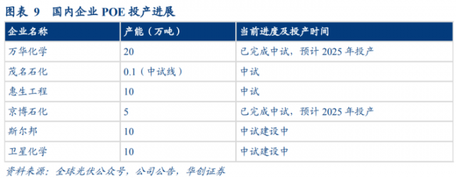 萬華化學(xué):2021年9月,公司自主知識(shí)產(chǎn)權(quán)的POE產(chǎn)品已經(jīng)完成中試。按照規(guī)劃,萬華將在2023年投產(chǎn)10萬噸POE,2025年之前合計(jì)投產(chǎn)20萬噸。