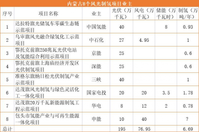 根據(jù)項(xiàng)目及資料查詢顯示,上述項(xiàng)目的主要投資業(yè)主分別為中國(guó)氫能、中石化、京能、深能、三峽、國(guó)家電投、華電以及申能等企業(yè)。具體項(xiàng)目情況見(jiàn)下: