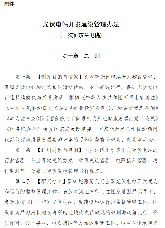 附件:光伏電站開(kāi)發(fā)建設(shè)管理辦法(二次征求意見(jiàn)稿)