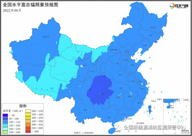 附圖6 全國2022年9月水平面總輻照量預報圖