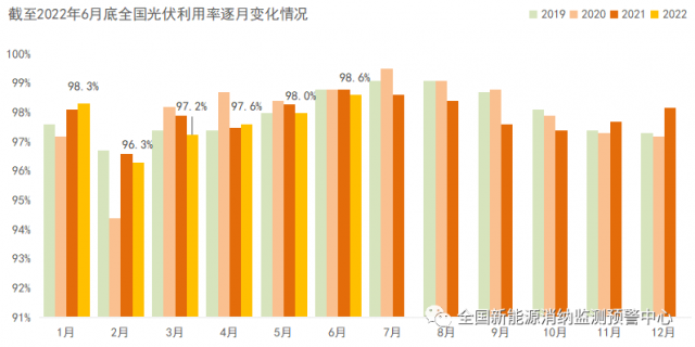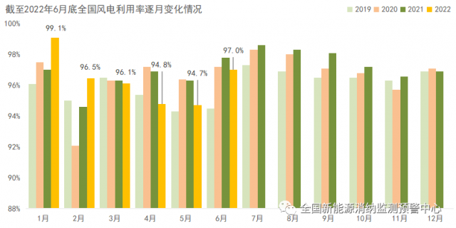 上半年全國新能源消納利用水平整體處于合理區(qū)間。風電利用率為95.8%,同比下降0.6個百分點;光伏利用率為97.7%,同比下降0.2個百分點。