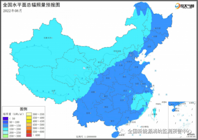 附圖4 全國2022年8月水平面總輻照量預報圖
