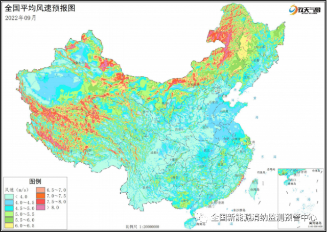 7-9月,在風能方面,全國大部分地區(qū)平均風速呈減小趨勢,三北地區(qū)的大風區(qū)域風速進一步減小,江南南部及沿海等地風速呈增大趨勢。在太陽能方面,全國大部分地區(qū)水平面總輻照量呈現(xiàn)減小趨勢,平均水平面總輻照量低值區(qū)主要位于四川以東、秦嶺淮河以南的大部分地區(qū),高值區(qū)主要位于內(nèi)蒙古西部、甘肅西部、新疆東部和青海西部地區(qū)。