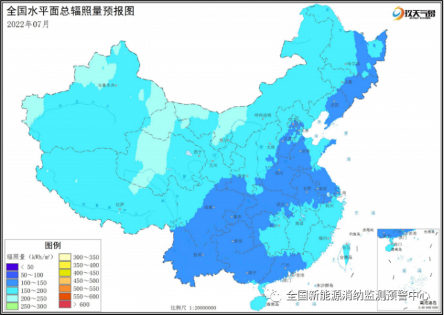 附圖2 全國2022年7月水平面總輻照量預報圖