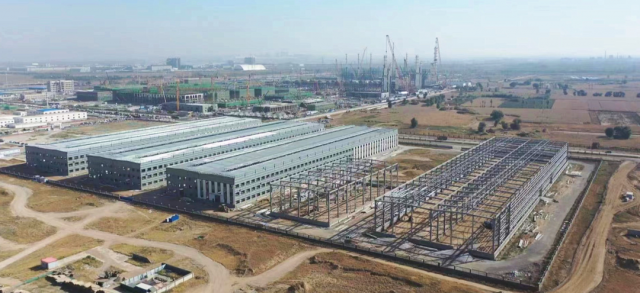 “從今年5月開始建設(shè),到現(xiàn)在工程量已完成43%,預(yù)計(jì)在10月中旬,我們的主體結(jié)構(gòu)將實(shí)現(xiàn)封頂,然后進(jìn)入我們的工藝管道和設(shè)備的安裝階段。爭(zhēng)取明年2月份達(dá)到中交條件,3月份實(shí)現(xiàn)試車。”內(nèi)蒙古大全新能源有限公司施工管理部施工經(jīng)理柴宏偉說。