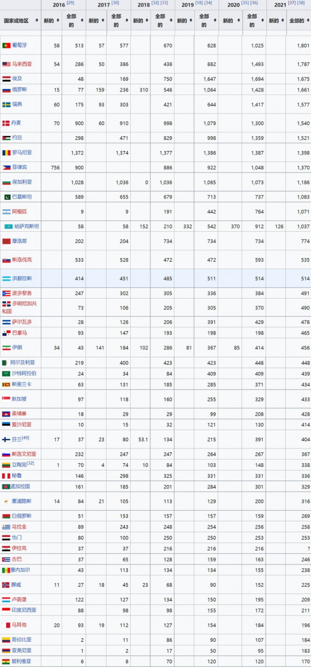 國(guó)際可再生能源署2021年度世界各國(guó)光伏裝機(jī)統(tǒng)計(jì)(單位:MW)