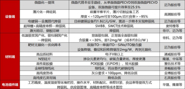 ●硅片、輔材、設備需要針對性開發(fā)以及提效降本。