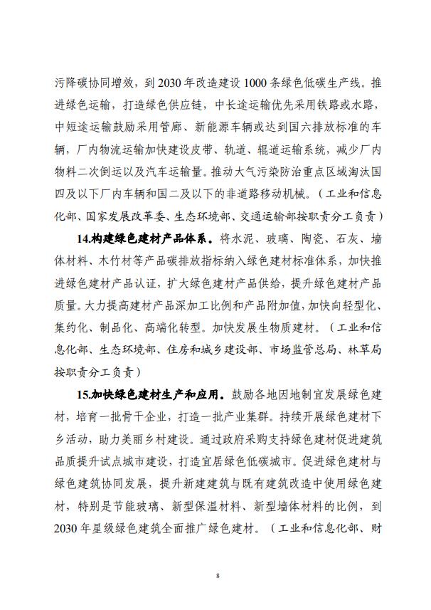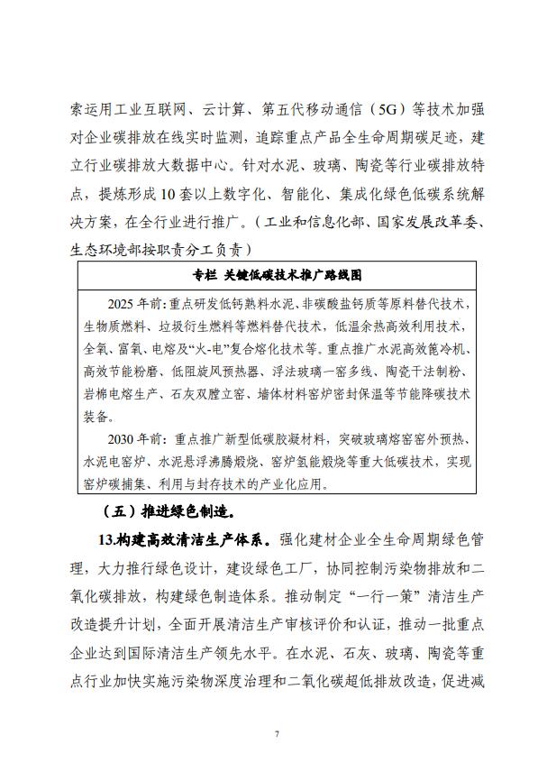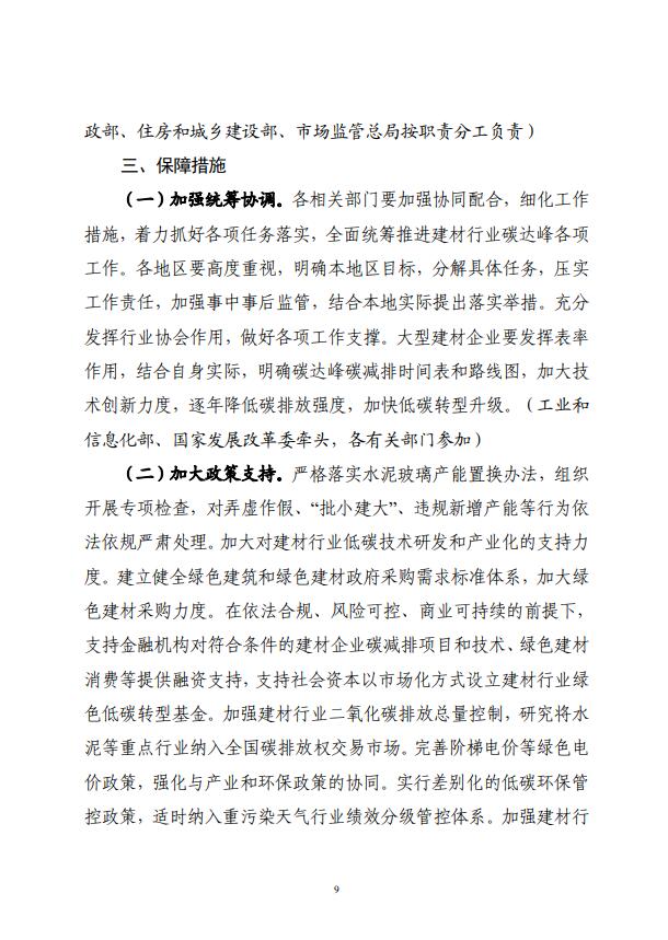 四部門(mén)關(guān)于印發(fā)建材行業(yè)碳達(dá)峰實(shí)施方案的通知