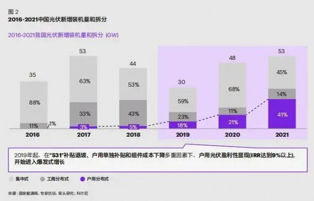 而隨著政策和盈利性驅(qū)動,以及“整縣推進(jìn)”戰(zhàn)略加持,未來以戶用光伏為代表的分布式能源發(fā)展將異軍突起,成為不可忽視的動力和趨勢之一。