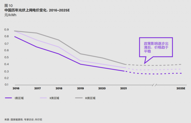 光伏電站的內(nèi)部收益率主要受上網(wǎng)電價(jià)、投資/發(fā)電成本直接影響,科爾尼預(yù)計(jì),未來上網(wǎng)電價(jià)會逐漸形成穩(wěn)定的市場定價(jià)機(jī)制,但長期投資發(fā)電成本的下降將會顯著提升分布式光伏的收益。