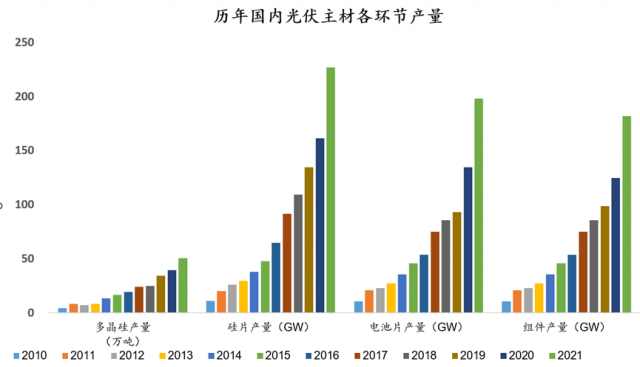 表1:歷年光伏主材各環(huán)節(jié)產(chǎn)量;