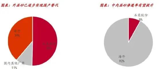 光伏石英坩堝產(chǎn)品端:光伏行業(yè)由于產(chǎn)品精密度程度高、技術(shù)發(fā)展快,對(duì)石英坩堝的純度、精度要求日益嚴(yán)格。我國(guó)的石英制品行業(yè)起步較晚,只有少數(shù)規(guī)?;髽I(yè)的石英坩堝技術(shù)方面達(dá)到先進(jìn)水平。技術(shù)上來(lái)看,近幾年我國(guó)石英制品行業(yè)的技術(shù)進(jìn)步較為明顯,尤其是石英坩堝技術(shù)水平與國(guó)外企業(yè)產(chǎn)品的差距逐步縮小,在坩堝尺寸、純度、拉晶時(shí)間和拉晶次數(shù)等方面均取得顯著進(jìn)步。此外,國(guó)內(nèi)石英坩堝具有一定的成本優(yōu)勢(shì),在質(zhì)量和性能等方面與進(jìn)口石英坩堝的差距正逐漸縮小。這些都為國(guó)產(chǎn)化創(chuàng)造了條件。從細(xì)分部件來(lái)看,外層砂已基本實(shí)現(xiàn)國(guó)產(chǎn)替代,中內(nèi)層砂產(chǎn)品和客戶認(rèn)可度逐步提升。目前石英股份的高純石英砂仍以外層砂為主,我們預(yù)計(jì)石英股份在中內(nèi)層砂質(zhì)量以及客戶認(rèn)可度上均有提升,并有望逐步提高中內(nèi)層砂的滲透率。我們預(yù)計(jì)21年石英股份外層砂份額約50%,中內(nèi)層砂份額約8%。