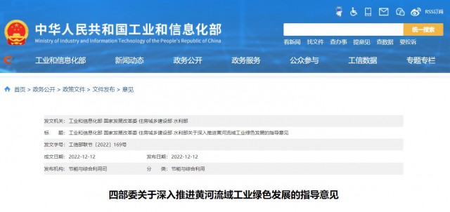 12月12日,工信部、國(guó)家發(fā)改委、住建部、水利部四部委發(fā)布《關(guān)于深入推進(jìn)黃河流域工業(yè)綠色發(fā)展的指導(dǎo)意見(jiàn)》。