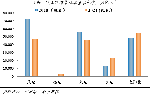 光伏是新能源發(fā)電端建設(shè)的核心領(lǐng)域之一,中電聯(lián)數(shù)據(jù)顯示,2021年我國太陽能新增裝機容量為54930兆瓦,同比增長14.0%,占新能源發(fā)電新增裝機總?cè)萘康?2%。