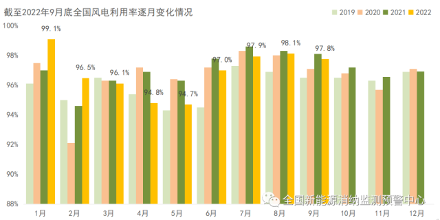 三季度,全國風電利用率為98%,同比下降0.3個百分點;光伏利用率為99%,同比上升0.8個百分點。今年前三季度,全國風電累計利用率為96.5%,同比下降0.5個百分點;光伏利用率為98.2%,同比上升0.17個百分點。
