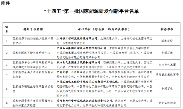 附件:“十四五”第一批國家能源研發(fā)創(chuàng)新平臺(tái)名單