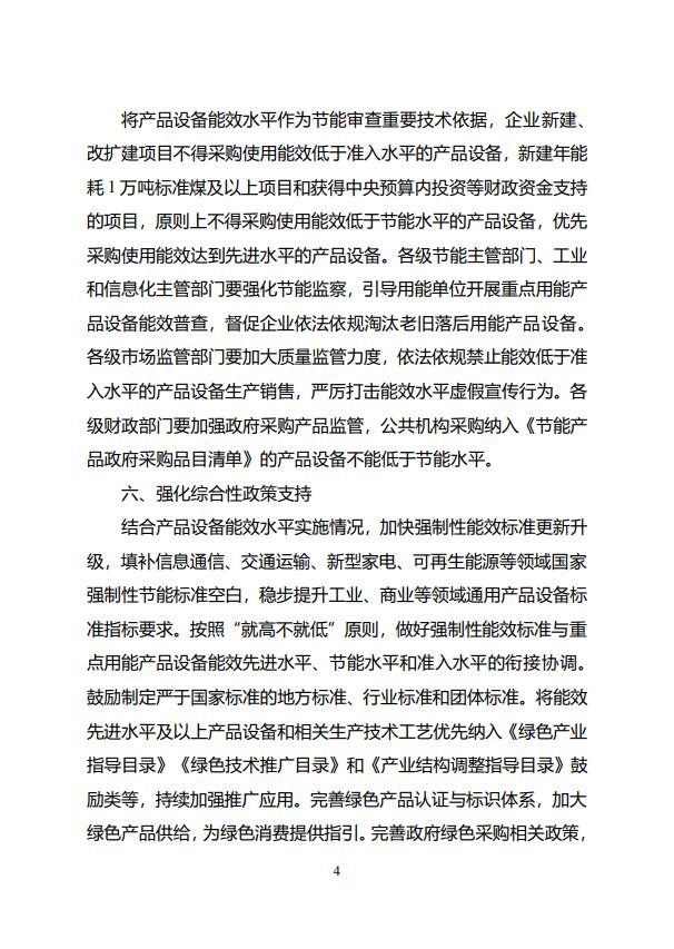 結(jié)合產(chǎn)品設(shè)備能效水平實施情況,加快強(qiáng)制性能效標(biāo)準(zhǔn)更新升級,填補(bǔ)可再生能源等領(lǐng)域國家強(qiáng)制性節(jié)能標(biāo)準(zhǔn)空白,穩(wěn)步提升工業(yè)、商業(yè)等領(lǐng)域通用產(chǎn)品設(shè)備標(biāo)準(zhǔn)指標(biāo)要求。