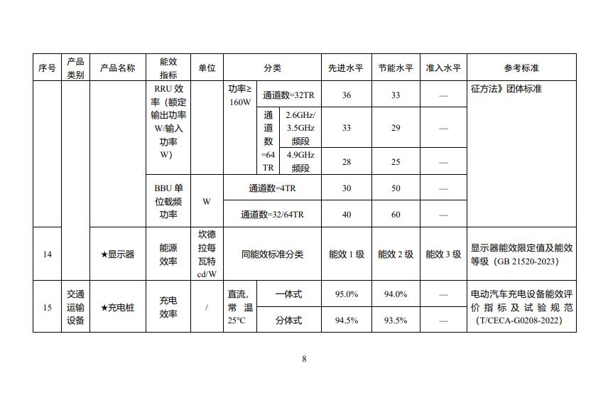 征求意見稿提出,擴(kuò)大重點用能產(chǎn)品設(shè)備覆蓋范圍。綜合考慮應(yīng)用規(guī)模、能源消耗量和節(jié)能降碳工作需要,擴(kuò)大重點用能產(chǎn)品設(shè)備覆蓋范圍,在2022年已明確能效水平的20種產(chǎn)品設(shè)備基礎(chǔ)上,增加服務(wù)器、充電樁、數(shù)據(jù)中心、通信基站、工業(yè)鍋爐、光伏組件等22種產(chǎn)品設(shè)備,基本實現(xiàn)重點用能產(chǎn)品設(shè)備全覆蓋,進(jìn)一步支撐重點領(lǐng)域節(jié)能降碳。