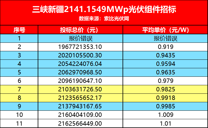 “瘋狂”的并不只有這一家企業(yè)。據(jù)悉,共11家企業(yè)參與這一項目投標,除一家企業(yè)報價明顯錯誤外,其余10家企業(yè),有8家都投出1元/W以下的價格,整體均價僅0.9756元/W,這是行業(yè)內(nèi)首次出現(xiàn)n型組件平均價低于1元/W的大型招標,值得所有光伏人關(guān)注和思考。