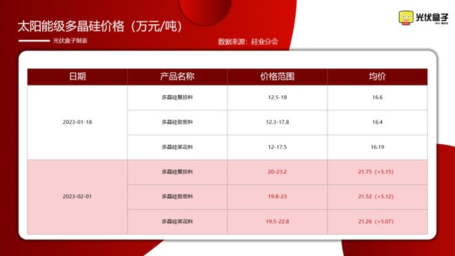 2023年2月1日硅業(yè)分會發(fā)布最新硅料價格,漲幅超31%。