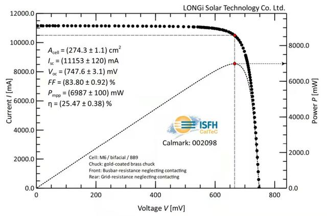 3月29日,經(jīng)德國哈梅林太陽能研究所(ISFH)認(rèn)證,隆基采用摻鎵p型硅片制備的硅異質(zhì)結(jié)電池(p-HJT)獲得效率新突破:完全利用可量產(chǎn)工藝在全尺寸(M6尺寸,面積274.3cm)單晶硅片上,創(chuàng)造了轉(zhuǎn)換效率為25.47%的大尺寸p型光伏電池效率世界紀(jì)錄,進(jìn)一步驗(yàn)證了低成本異質(zhì)結(jié)量產(chǎn)技術(shù)的可行性。