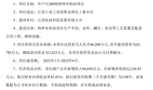 2021年10月27日,富祥藥業(yè)發(fā)布關(guān)于全資子公司投資建設(shè)年產(chǎn)11260噸特種有機硅項目的公告。