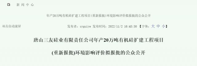 重新報(bào)批!三友20萬噸有機(jī)硅擴(kuò)建項(xiàng)目環(huán)評(píng)公示