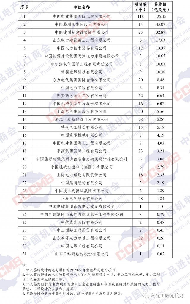 2022年中國企業(yè)境外電力項(xiàng)目簽約額排名