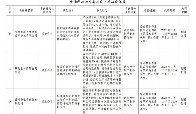 1月30日,華能集團(tuán)發(fā)布《關(guān)于供應(yīng)商不良行為處理的公告》,共處罰27家企業(yè)。其中包括3家光伏相關(guān)公司。