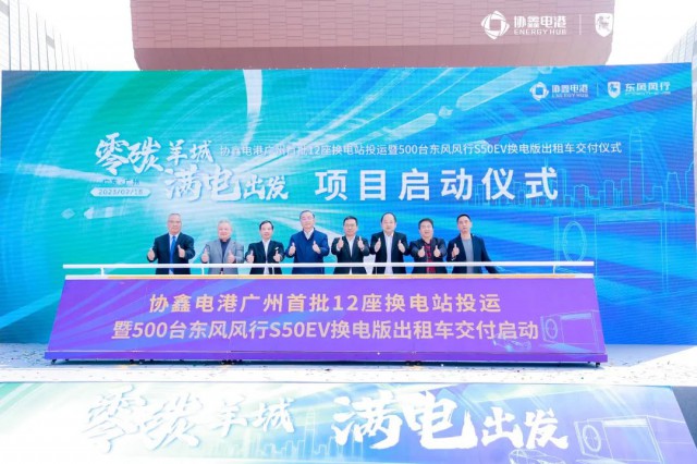 本次啟動(dòng)站點(diǎn)為協(xié)鑫電港自研單通道換電站,單站每日可服務(wù)336車次,單次換電僅需90秒,羊城首批入網(wǎng)出租車司機(jī)將享受極致補(bǔ)能體驗(yàn)?;顒?dòng)現(xiàn)場(chǎng),東風(fēng)柳汽乘用車銷售公司副總經(jīng)理陳經(jīng)新、協(xié)鑫能科乘用車事業(yè)部總經(jīng)理諸葛環(huán)環(huán)代表雙方發(fā)布聯(lián)名款東風(fēng)風(fēng)行S50EV換電版出租車?!皡f(xié)鑫能科”與“東風(fēng)風(fēng)行”的雙logo成為這款車型的醒目尾標(biāo),充分體現(xiàn)了協(xié)鑫能科以車為核,與車企深度融合,雙向賦能,助力廣州在城市交通領(lǐng)域率先實(shí)現(xiàn)“雙碳”目標(biāo)的決心。隨著未來(lái)更多車輛投入運(yùn)營(yíng),將有更多市民體驗(yàn)到S50EV的優(yōu)秀性能和協(xié)鑫電港的90秒換電優(yōu)勢(shì)。
