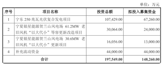 談及定增的背景和目的,銀星能源在預(yù)案中表示,清潔能源的建設(shè)是實現(xiàn)“碳達(dá)峰、碳中和”目標(biāo)的重要舉措。公司的主營業(yè)務(wù)為風(fēng)力發(fā)電、太陽能發(fā)電及其相關(guān)產(chǎn)業(yè)的建設(shè)與運營管理。向特定對象發(fā)行的募資將用于公司光伏發(fā)電、風(fēng)力發(fā)電業(yè)務(wù)的發(fā)展,將為公司未來的戰(zhàn)略實施提供有力支撐。
