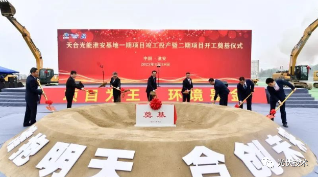 近日,天合光能淮安基地一期項目竣工投產(chǎn)暨二期項目開工奠基儀式舉行。