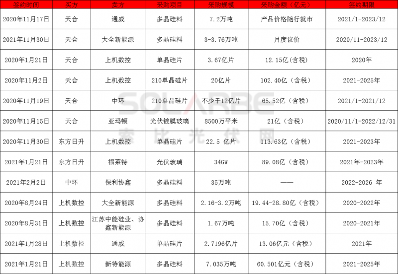 為保證210產(chǎn)品正常供應(yīng),天合、東方日升、中環(huán)紛紛簽訂多晶硅料、硅片以及光伏玻璃長(zhǎng)單。