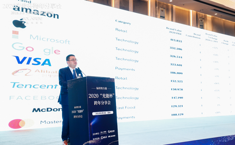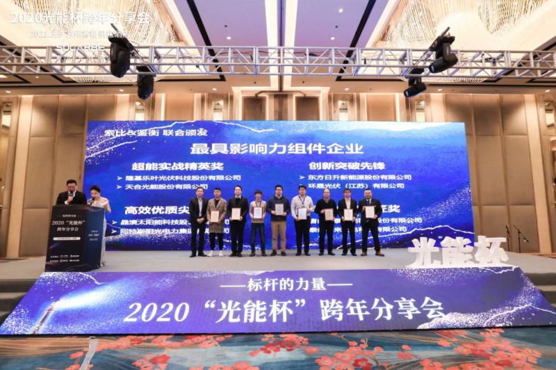 3月3日,由索比光伏網(wǎng)主辦的2020年度“光能杯”跨年分享會(huì)暨頒獎(jiǎng)典禮圓滿落幕。這是2021開年的全國(guó)首個(gè)大型光伏頒獎(jiǎng)盛宴,來自中國(guó)各大光伏品牌企業(yè)代表及各地經(jīng)銷商代表齊聚一堂,400余人共同見證中國(guó)光伏行業(yè)的開年榮耀時(shí)刻。