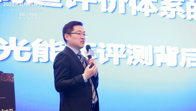 鑒衡太陽能事業(yè)部總經(jīng)理周罡進(jìn)行《中國(guó)光伏制造評(píng)價(jià)體系的國(guó)際化之路--光能杯評(píng)測(cè)背后的故事》主題演講