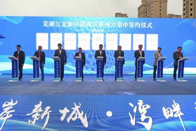 ▲蕪湖江北新區(qū)招商引資項(xiàng)目集中簽約儀式-建筑科技類