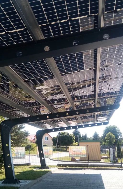 作為歐洲光伏需求旺盛的市場,波蘭早就將“光伏+車棚”滲透于應(yīng)用當(dāng)中,出現(xiàn)了一個(gè)個(gè)“綠色”車棚的身影。中來JW-HD144N高功率、高性價(jià)比的雙面組件替代了傳統(tǒng)車棚的膜結(jié)構(gòu)鋼頂,不僅可以遮風(fēng)擋雨、節(jié)能環(huán)保而且實(shí)用性強(qiáng),深藍(lán)色的光伏電板在陽光下熠熠生輝,為當(dāng)?shù)卦鎏砹艘坏懒聋惖娘L(fēng)景。