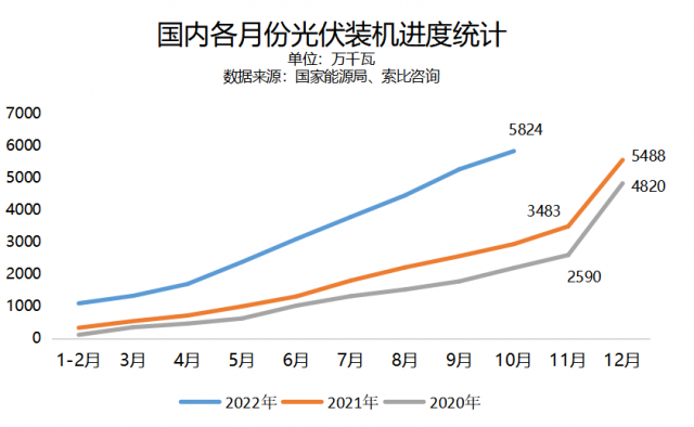 與9月單月新增裝機(jī)8.13GW的“壯舉”相比,10月單月新增5.64GW似乎有些“偏少”,環(huán)比出現(xiàn)下滑,結(jié)合此前三峽能源(SH:600905)公告中提到的“光伏組件價(jià)格始終維持在較高水平、年底大規(guī)模進(jìn)行組件安裝的可能性很小、項(xiàng)目建設(shè)進(jìn)展不及預(yù)期”等說法,難免會(huì)讓部分從業(yè)者擔(dān)心,今年四季度的搶裝潮能否如約而至,全年裝機(jī)規(guī)模能否達(dá)到業(yè)內(nèi)預(yù)期水平。