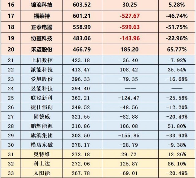 如下表,總市值排在前20的光伏企業(yè),其市值較今年1月1日,其中18家均出現(xiàn)不小幅度下跌。隆基綠能總市值減少1592億,通威股份減少313億,三峽能源跌去577億,陽光電源跌去805億。此外,先導智能、福萊特、正泰電器、晶科科技、海優(yōu)新材等不少企業(yè),相比年初,總市值幾乎都是“腰斬”。