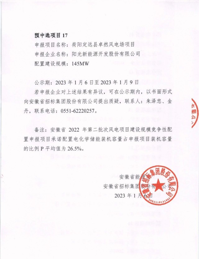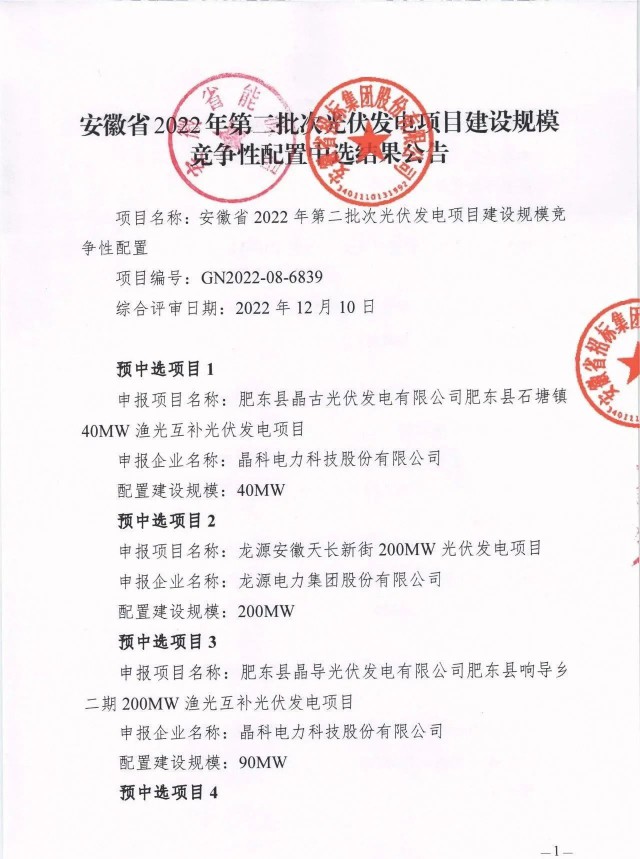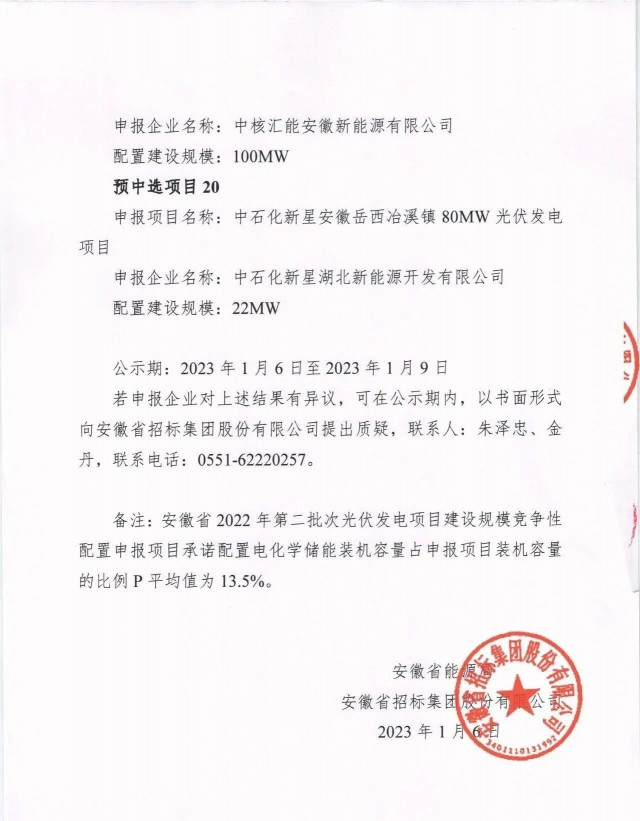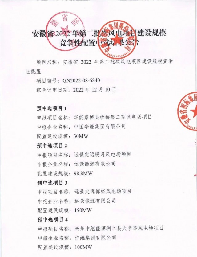 1月6日,安徽省能源局公示了2022年第二批光伏、風(fēng)電項(xiàng)目競(jìng)爭(zhēng)性配置優(yōu)選結(jié)果,共計(jì)37個(gè)項(xiàng)目入選,其中光伏規(guī)模為1.5GW,項(xiàng)目20個(gè);風(fēng)電項(xiàng)目規(guī)模為1.5GW,項(xiàng)目17個(gè)。