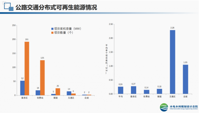 鑒于此,國家相關(guān)部門也委托了權(quán)威機構(gòu)就分布式光伏+交通的發(fā)展?jié)摿M行了研究。在光伏們主辦的第六屆分布式能源嘉年華“分布式光伏+交通”專場中,水電水利規(guī)劃設(shè)計總院信息數(shù)據(jù)中心主任工程師劉建東就我國分布式可再生能源在交通應(yīng)用的現(xiàn)狀做了分享,截止到2020年,不完全統(tǒng)計全國交通分布式可再生能源發(fā)電項目數(shù)量430個、裝機規(guī)模超過400MW。