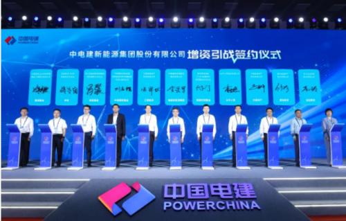 儀式上,中國(guó)電建總經(jīng)濟(jì)師兼電建新能源集團(tuán)董事長(zhǎng)劉明江作了發(fā)言,電建新能源集團(tuán)黨委書(shū)記、總經(jīng)理、法定代表人李岳軍與南網(wǎng)雙碳基金、工銀投資、太平人壽、中銀資產(chǎn)、中國(guó)中車等10家戰(zhàn)略投資人代表共同簽署增資協(xié)議。