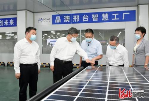倪岳峰書記對晶澳科技在推動全球新能源發(fā)展方面做出的貢獻表示肯定,并指出希望企業(yè)緊緊抓住河北省建設新型能源強省的重大機遇,加強關鍵核心技術(shù)攻關,提升太陽能轉(zhuǎn)換效率,壯大新能源裝備制造產(chǎn)業(yè),為改善河北省能源結(jié)構(gòu)、推動碳達峰碳中和作出積極貢獻。各級各有關部門要切實加大對新能源企業(yè)的支持力度,認真落實各項惠企政策,積極營造一流營商環(huán)境,為企業(yè)做強做優(yōu)做大提供有力保障。