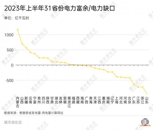 在內蒙古之外,山西、新疆、云南上半年富余電量均在400億千瓦時以上,寧夏、貴州、四川、陜西也超過200億千瓦時,都是“西電東送”的重要力量,也是電力“缺口”大省的強大“外援”。