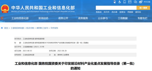 工業(yè)和信息化部 國務院國資委關于印發(fā)前沿材料產業(yè)化重點發(fā)展指導目錄(第一批)的通知