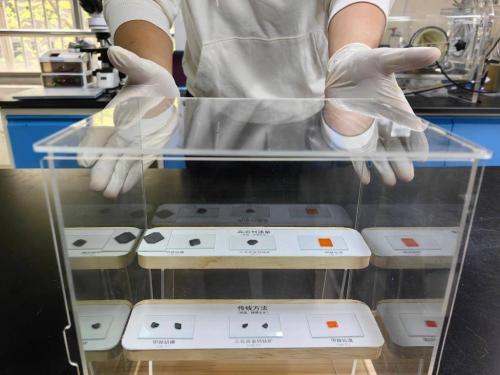 華東理工大學(xué)科研人員展示鈣鈦礦單晶晶片通用生長(zhǎng)技術(shù)。新華社記者吳振東攝